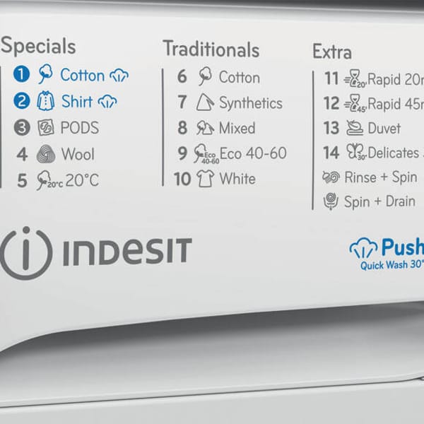 This Indesit freestanding front loading Washing Machine features a spacious 8,0kg capacity, an outstanding A energy rating and a fast, resource-efficient 1400 revolutions per minute spin speed. Push&Go with Steam Technology softens clothes and reduces creases by steaming laundry at the end of the cycle. With a short wash cycle that's under one hour, you'll have the laundry done in no time, and can reduce your ironing time by 30%*. Designed to make laundry quick and easy, the Ariel PODS® cycle gives your brilliantly clean clothes in just one hour at 30°C. Simply grab your pods, turn the dial and let your washing machine do the work. *Results obtained comparing Push&Go with steam cycle vs Push&Go without steam, using a professional steam generator iron with boiler; average ironing time saving on a set of 100% cotton shirt, pillowcase and long sleeved shirt. Tested by Innovhub-SSI. White Colour.